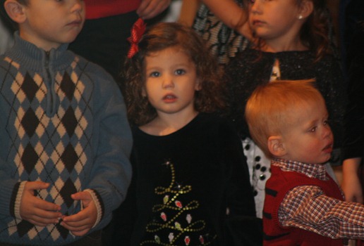 Delaney got to be in the children’s Christmas program at church this year. The toddlers and preschoolers sang a few songs that had actions. Of course Delaney didn’t want any part of singing or doing actions. She was just really taken aback by all the people watching her on stage.
